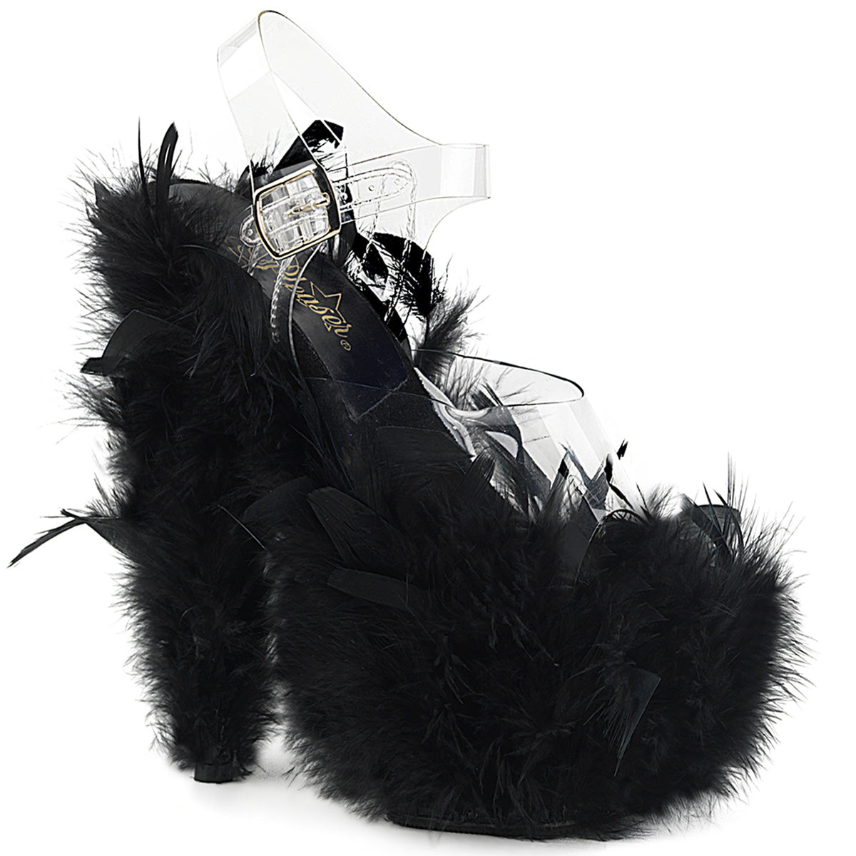 | Name | Pleaser Damen Sandalen ADORE-708f CLR / BLK Marabou Feder |
