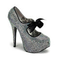 | Additional Description | 5 3/4 "" (14,6 cm) Ferse, 1 3/4 "" (4,5 cm) Versteckte Plattform, Strass mit passender Satin -Band Fliege Pump |