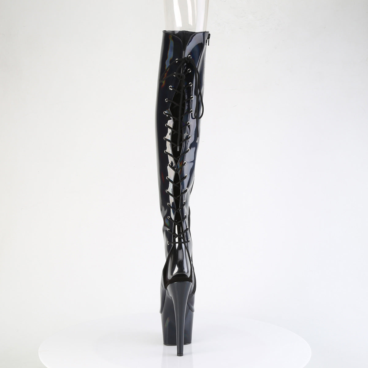 Pleaser Women's Platform Shoes ADORE-3019HWR Blk Str. Holo/Blk Holo
