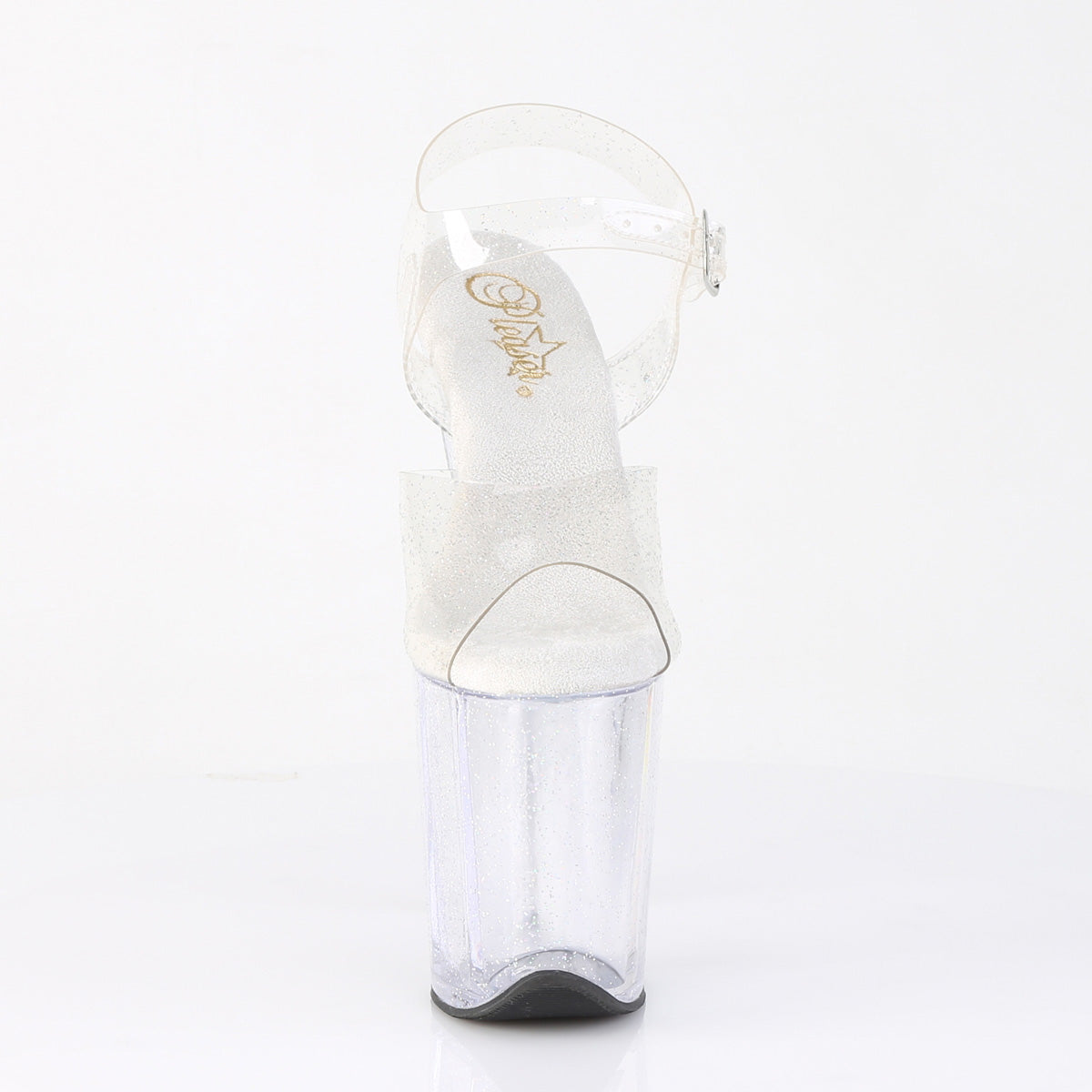 | Description | 8-Zoll-Ferse, 4-Zoll-Plattform-Knöchelband-Sandale mit Glitzer |