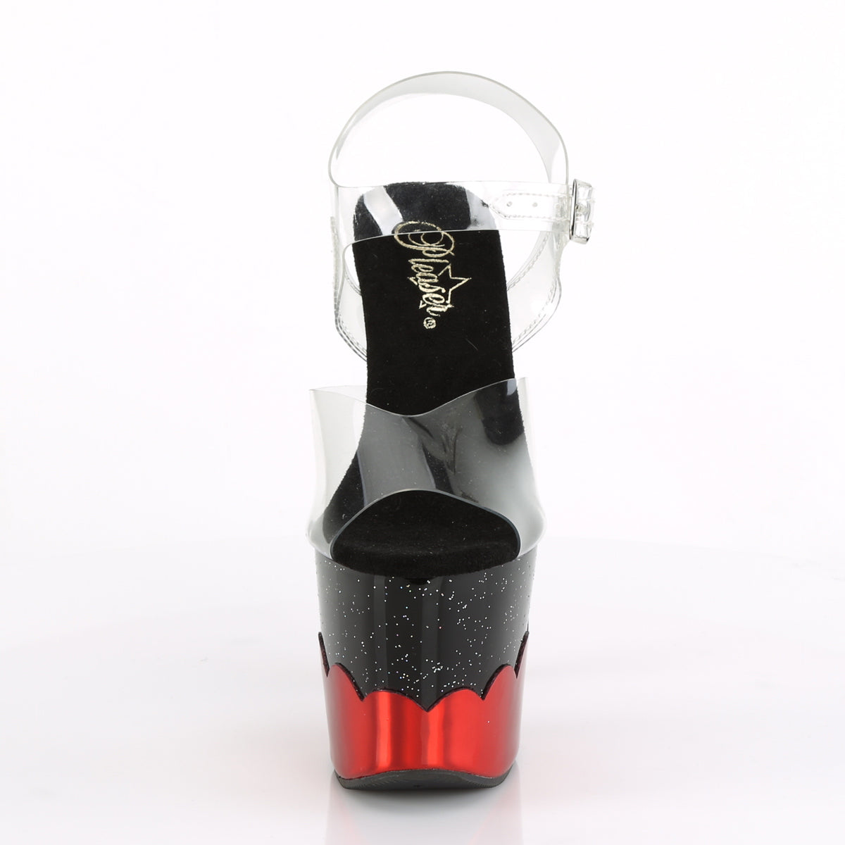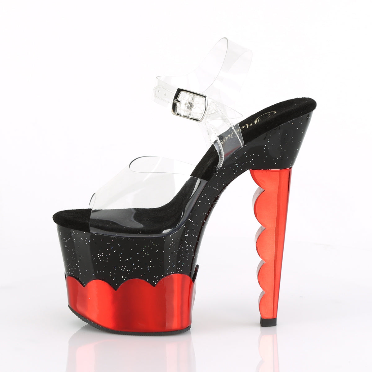| Name | Pleaser Damen Sandalen SCALLOP-708-2HGM CLR / BLK-rot Hologramm |