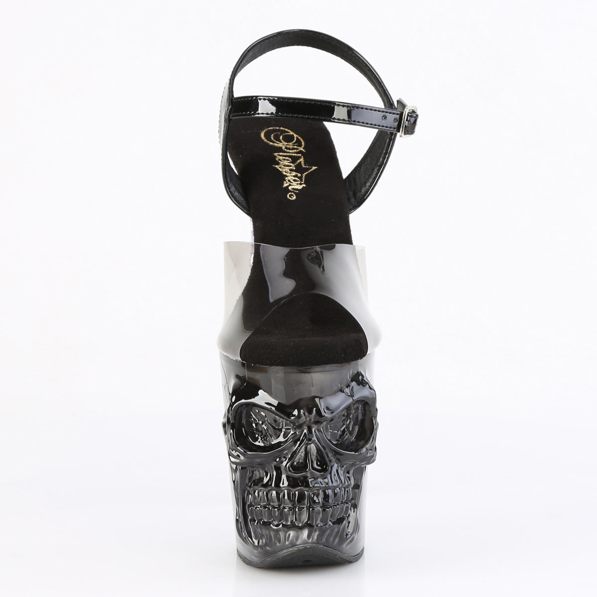 Additional Description 8"" (200mm) Finger Bone Heel, 4"" (100mm) Platform Ankle Strap Featuring Skull & Bones Clear/Black Ombre Platform Bottom