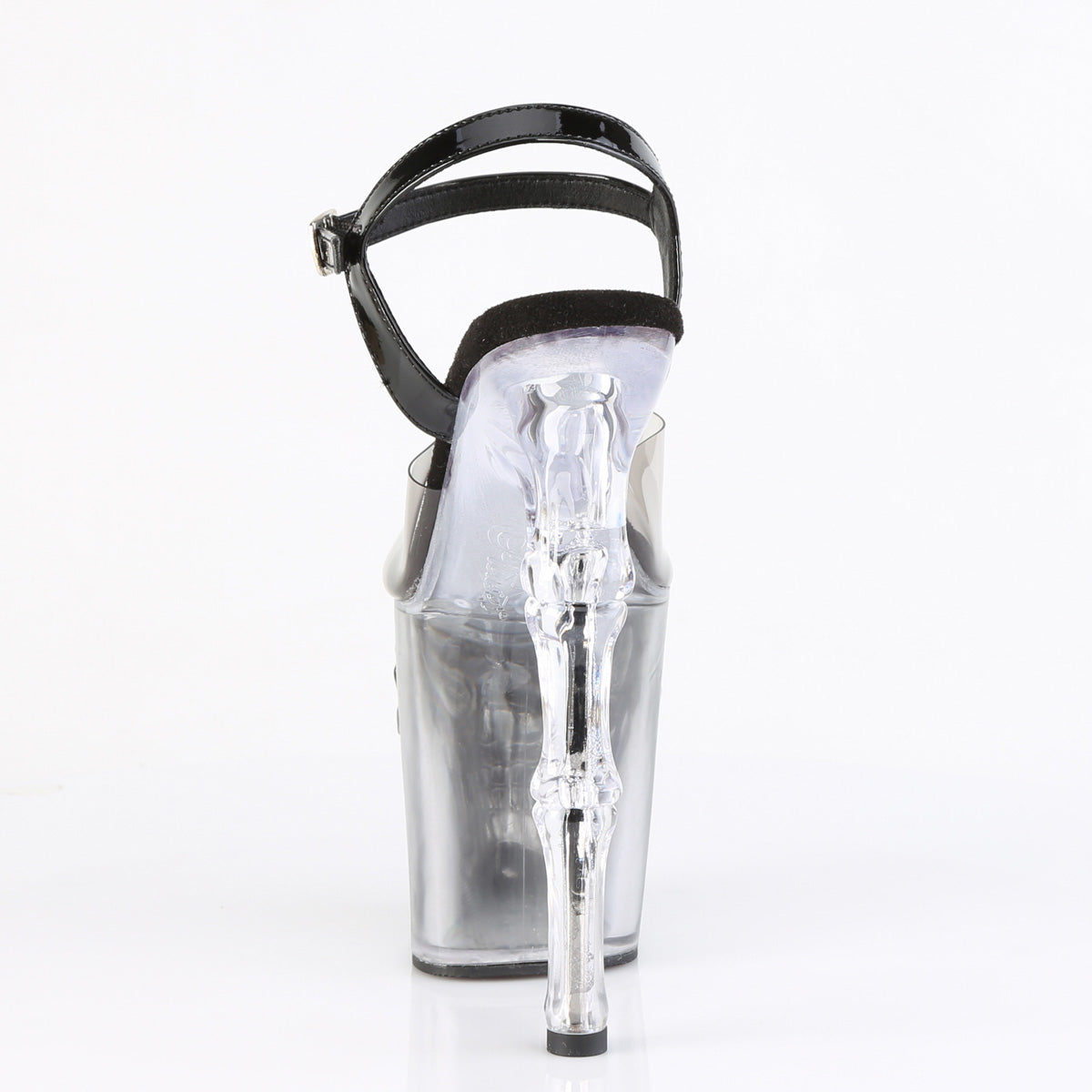 8"" (200mm) Finger Bone Heel, 4"" (100mm) Platform Ankle Strap Featuring Skull & Bones Clear/Black Ombre Platform Bottom