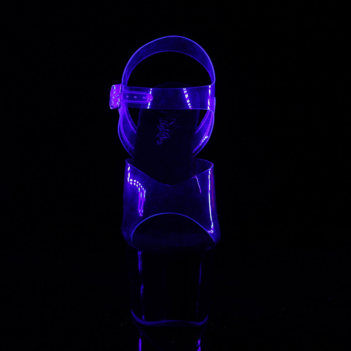 | Additional Description | 7 "" (178 mm) Ferse, 2 3/4 "" (70 mm) Plattform -Knöchelgurt Sandale mit Kontrast UV -Reaktivplattform unten |