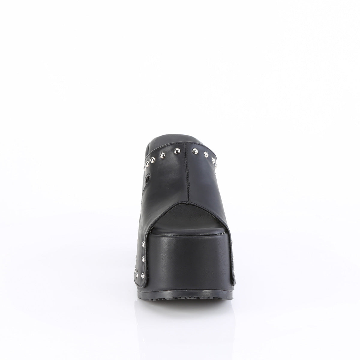 Additional Description 5"" (12.7cm) Chunky Heel, 3"" (7.6cm) Platform Slide Featuring Silver Chrome Plated Round Studs
