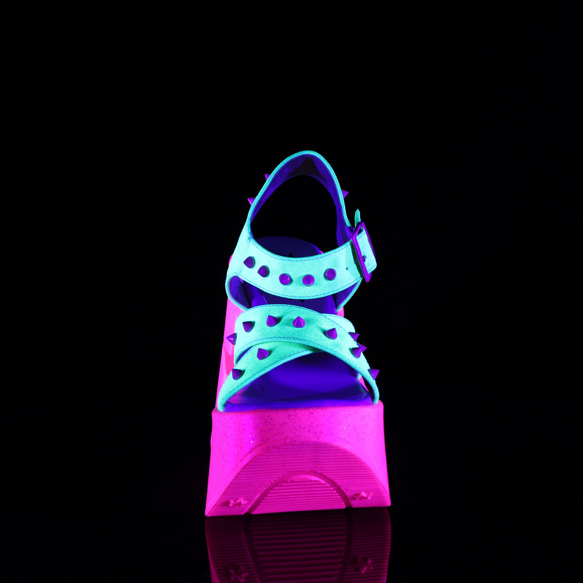 | Name | DemoniaCult Frauen Sandalen DYNAMITE-02 Neongelb Glitzer/Rosa |
