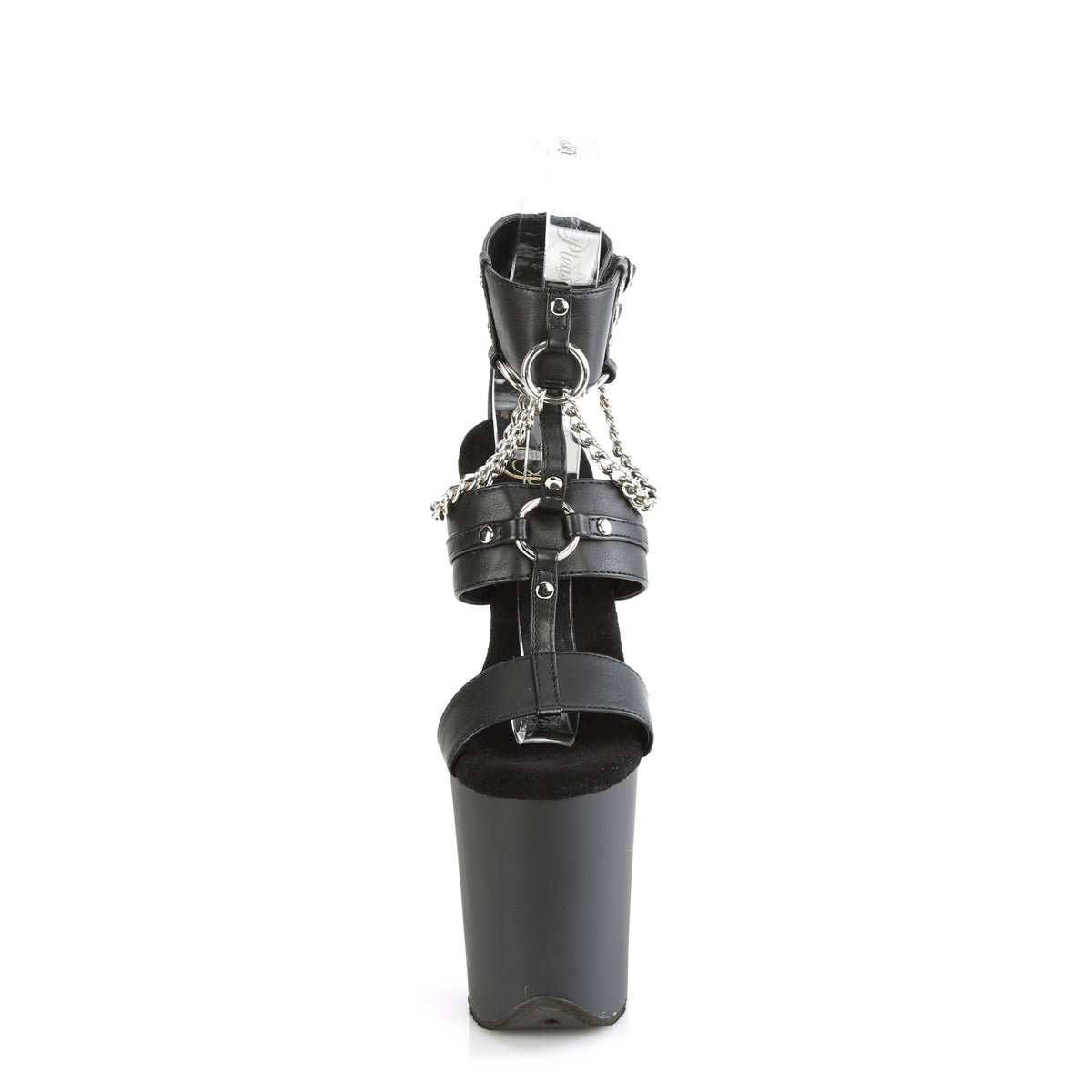 | Description | 8 "" (200 mm) Ferse, 4 "" (100 mm) Plattform Triple Band T-Strap Dual Knöchel Schnallen Sandale mit Metall O-Ringen, Stollen und Ketten Details |