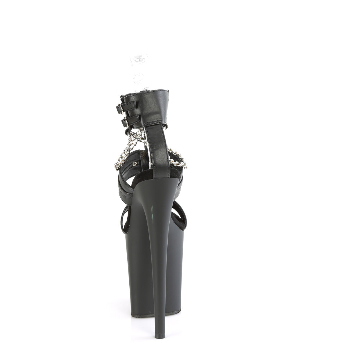 | Additional Description | 8 "" (200 mm) Ferse, 4 "" (100 mm) Plattform Triple Band T-Strap Dual Knöchel Schnallen Sandale mit Metall O-Ringen, Stollen und Ketten Details |