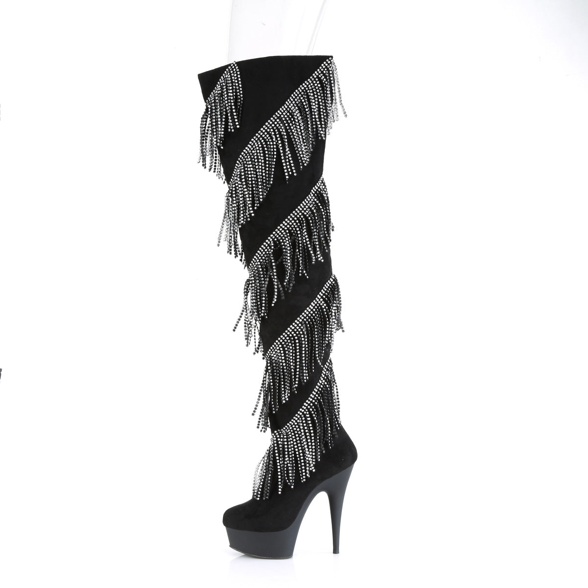 | Additional Description | 6 "" (152 mm) Ferse, 1 3/4 "" (45 mm) Plarform Oberschenkel-Hochstiefel mit 5-layer-simuliertem Strass-Rand, 1/2 Inside Reißverschluss |