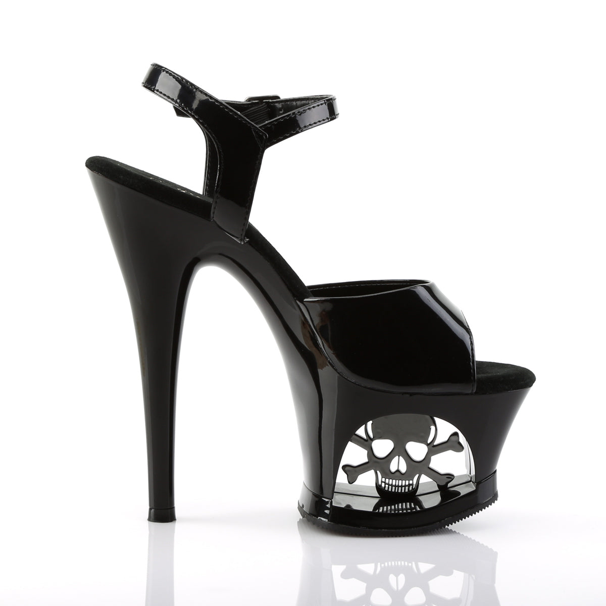 | Description | 7 "" (17.8cm) Ferse, 2 3/4 "" (7cm) Plattform Knöchelband Sandale mit Skull & Cross Bones in der Plattform |