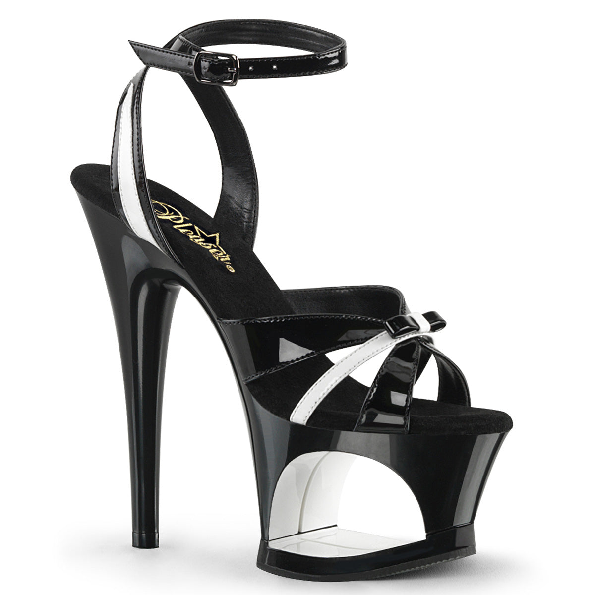 | Name | Pleaser Damen Sandalen MOON-728 BLK-WHT PAT / BLK |