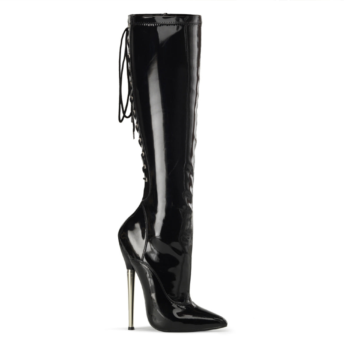 Devious Womens Boots DAGGER-2064 Blk Stretch Pat