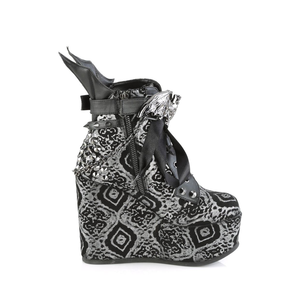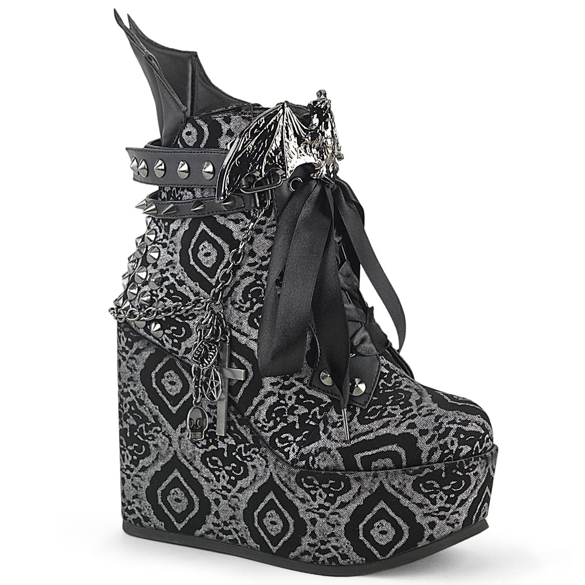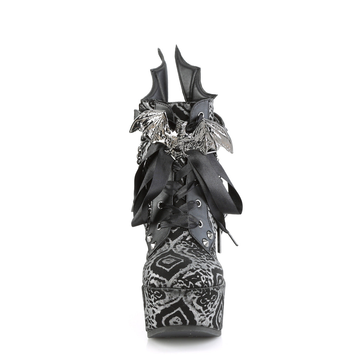DemoniaCult Ankle Boots POISON-107 Blk-Silver Faux Nubuck Leather