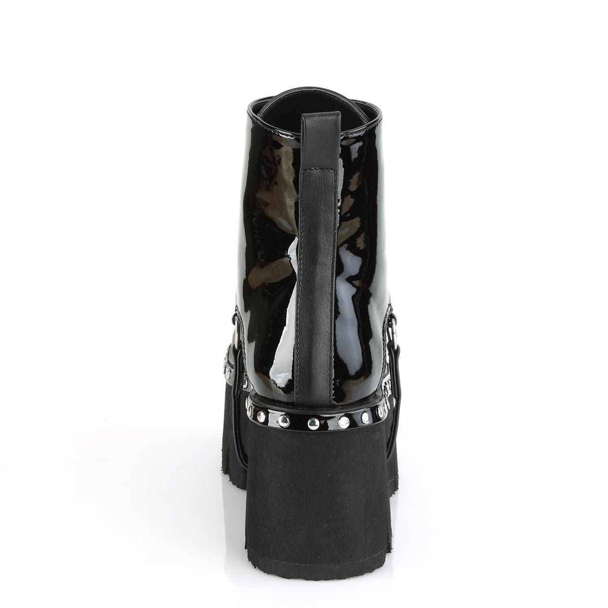 | Name | DemoniaCult Womens Ankle Boots ASHES-100 Blk Pat-Vegan Leather |