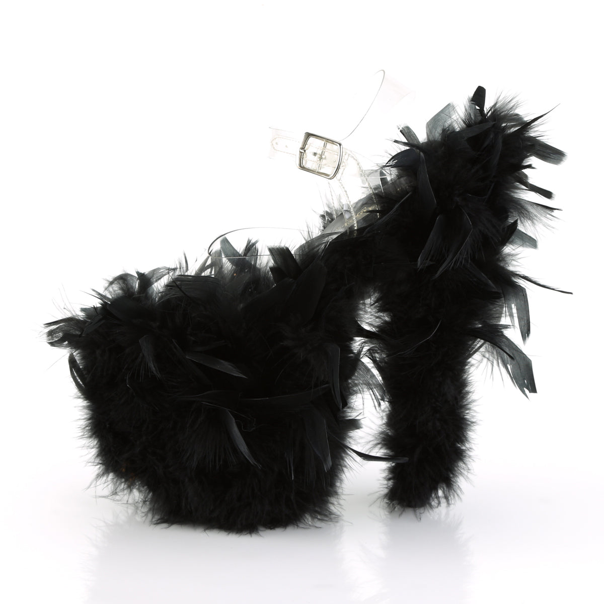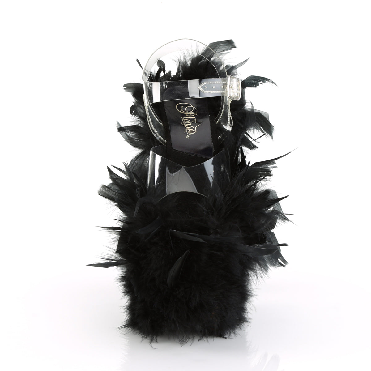 Pleaser Womens Sandals FLAMINGO-808F Clr/Blk Marabou Feather