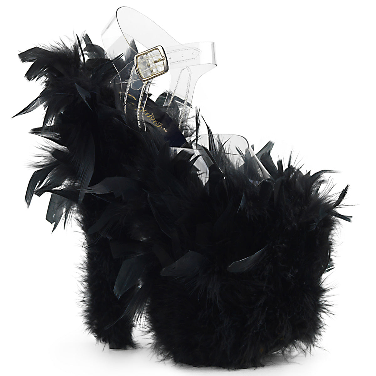 Name Pleaser Womens Sandals FLAMINGO-808F Clr/Blk Marabou Feather