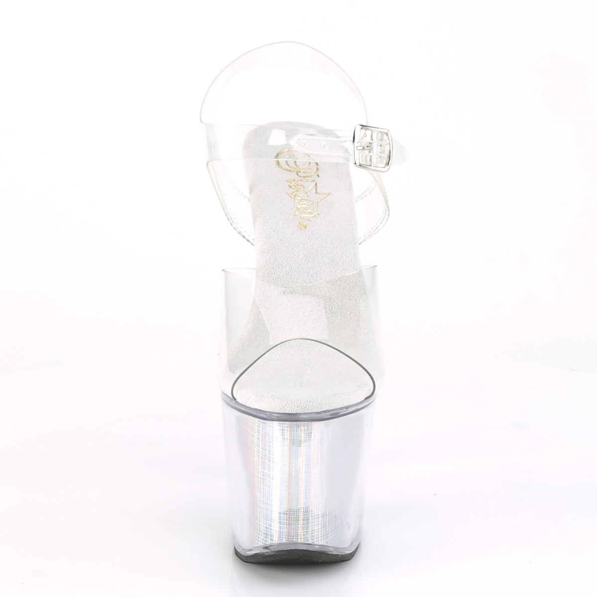 Pleaser Womens Sandals FLASHDANCE-708SCH Clr/Slv Hologram