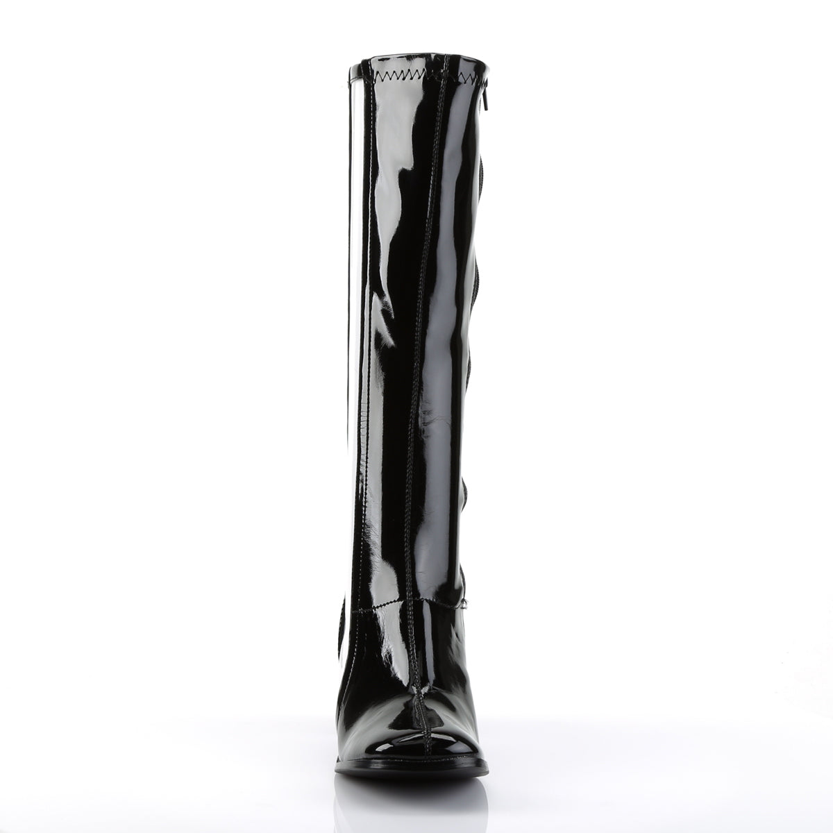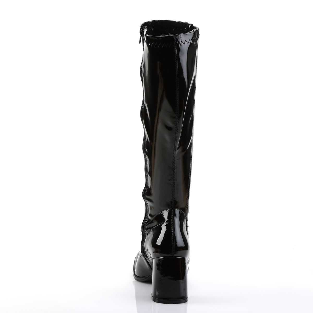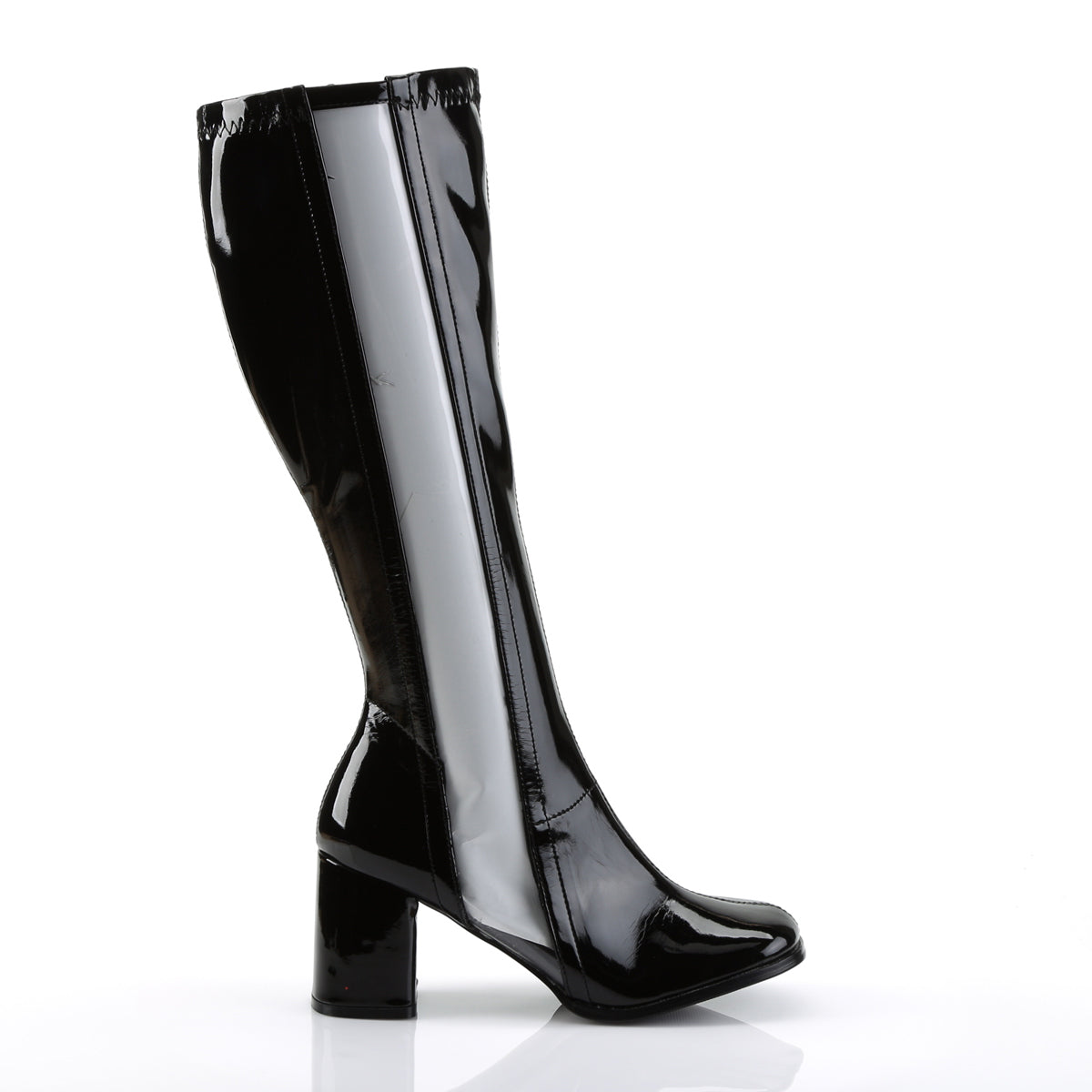 | Additional Description | 3"" (7.6cm) Block Heel Gogo Boot, Stretch Patent, with Transparent Stripe On the Outer Side, Full-Length Inner Side Zip Closure |