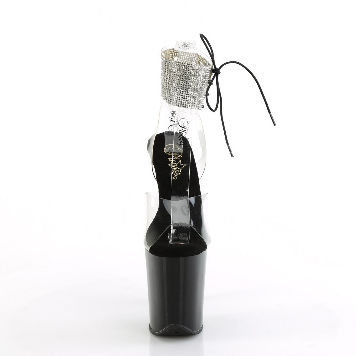 Additional Description 8"" (200mm) Heel, 4"" (100mm) Platform Rhinestone Embellished Ankle Cuff Sandal