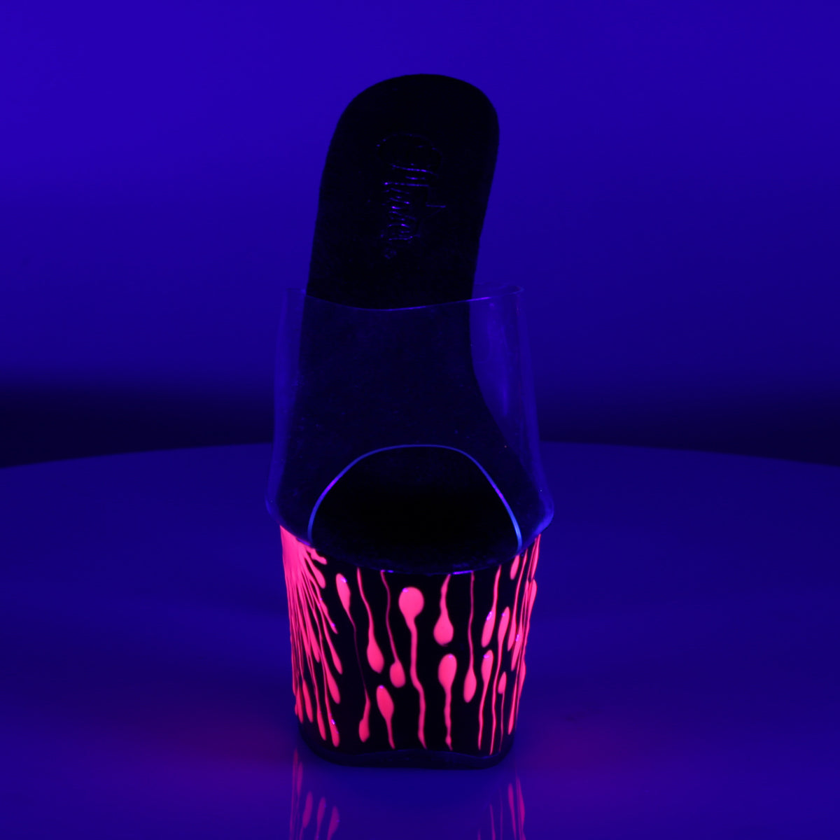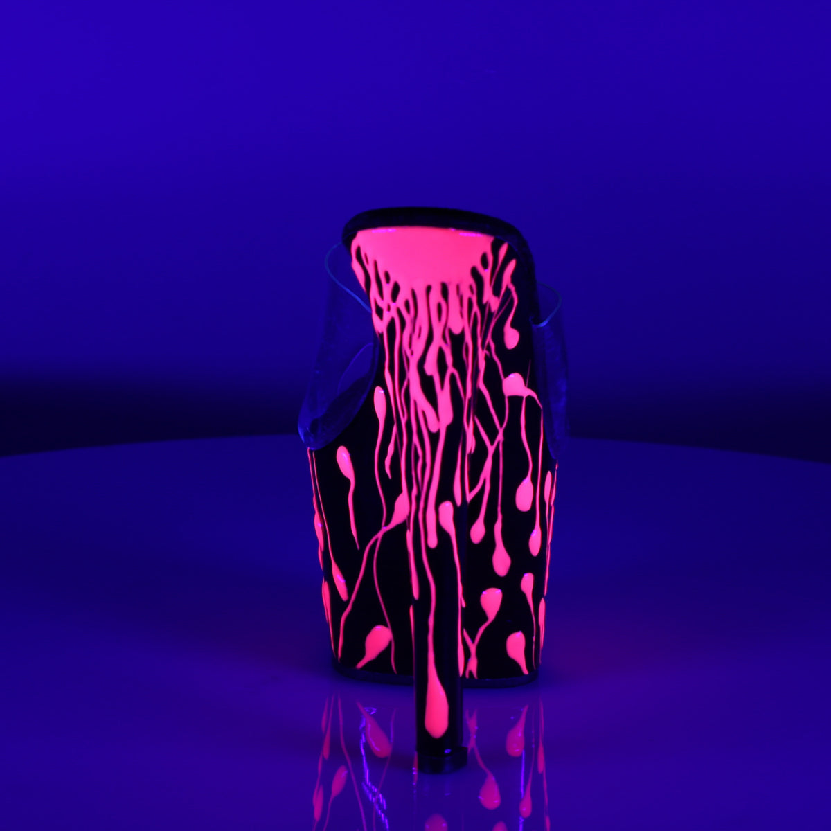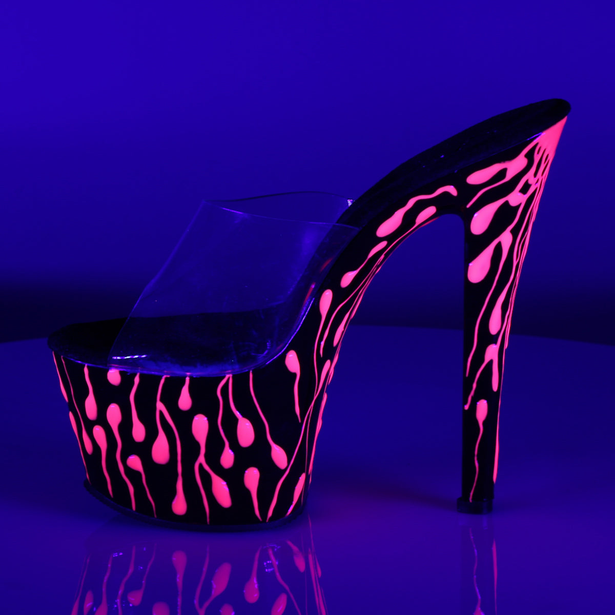 7""(17.8cm) Heel, 2 3/4""(7cm) Platform Slide Featuring Neon UV Reactive Blood Splatter Pattern On the Bottom