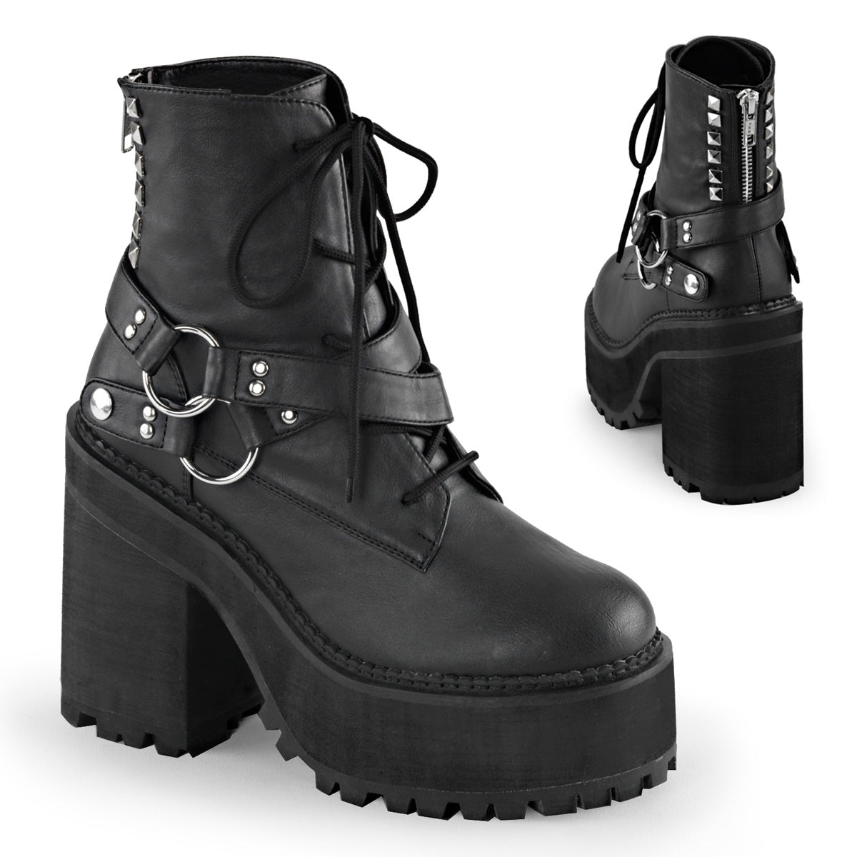 DemoniaCult Womens Ankle Boots ASSAULT-101 Blk Vegan Leather