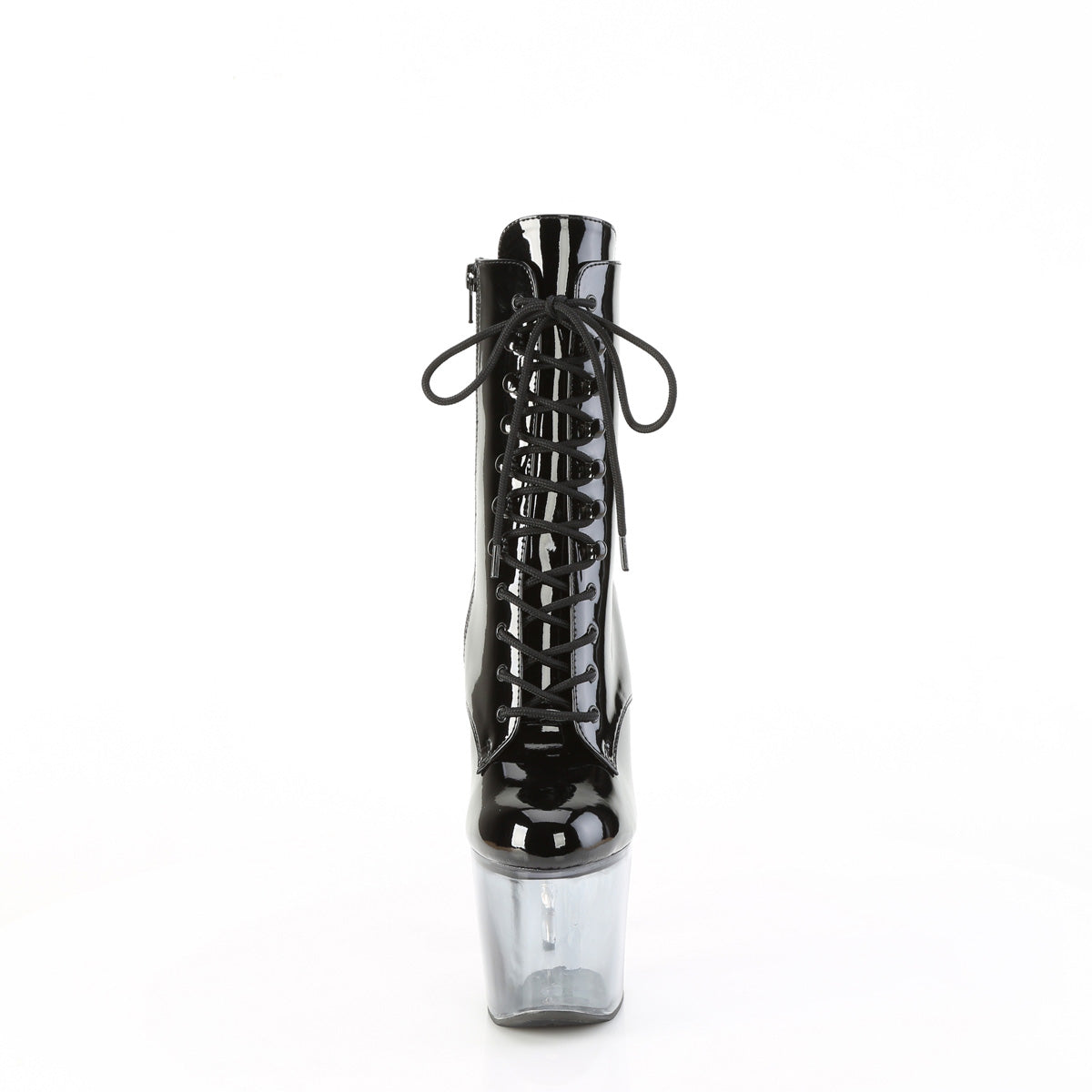 Additional Description 7"" (178mm) Stacked Heel, 2 3/4"" (70mm) Platform Lace-Up Front Ankle Boot Featuring Black/Clear Ombre Platform Bottom