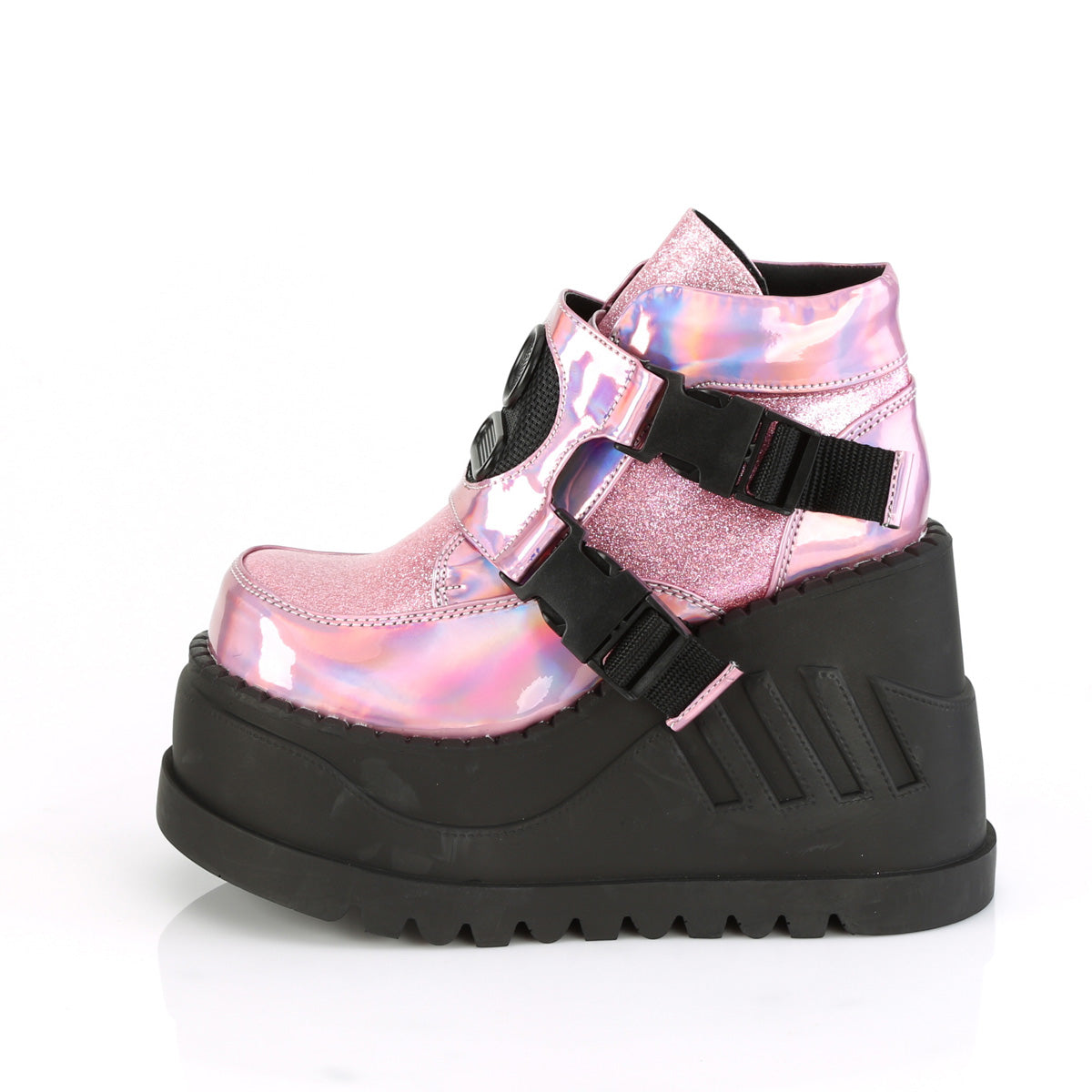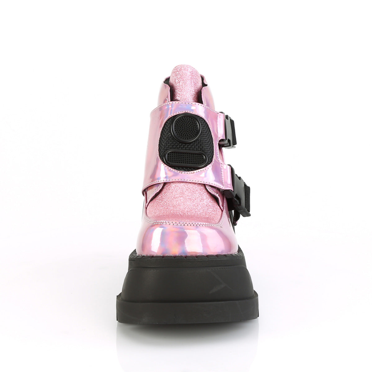 DemoniaCult Womens Ankle Boots STOMP-15 Pink Hologram-Glitter