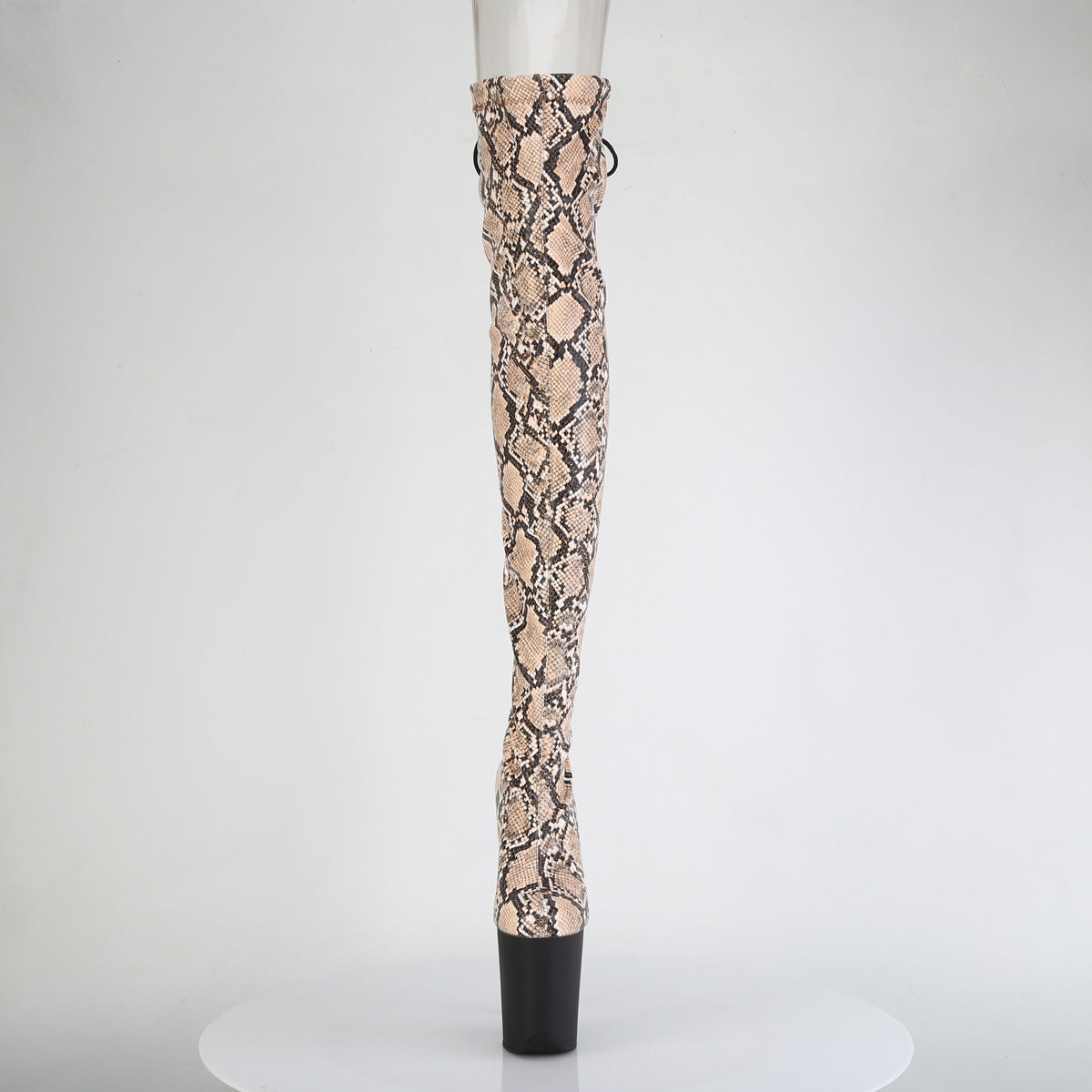 | Additional Description | 8"" (200mm) Heel, 4"" (100mm) Platform Platform Stretch Snake Print Pull-On Thigh Boot w/Rear Tie Fastening |