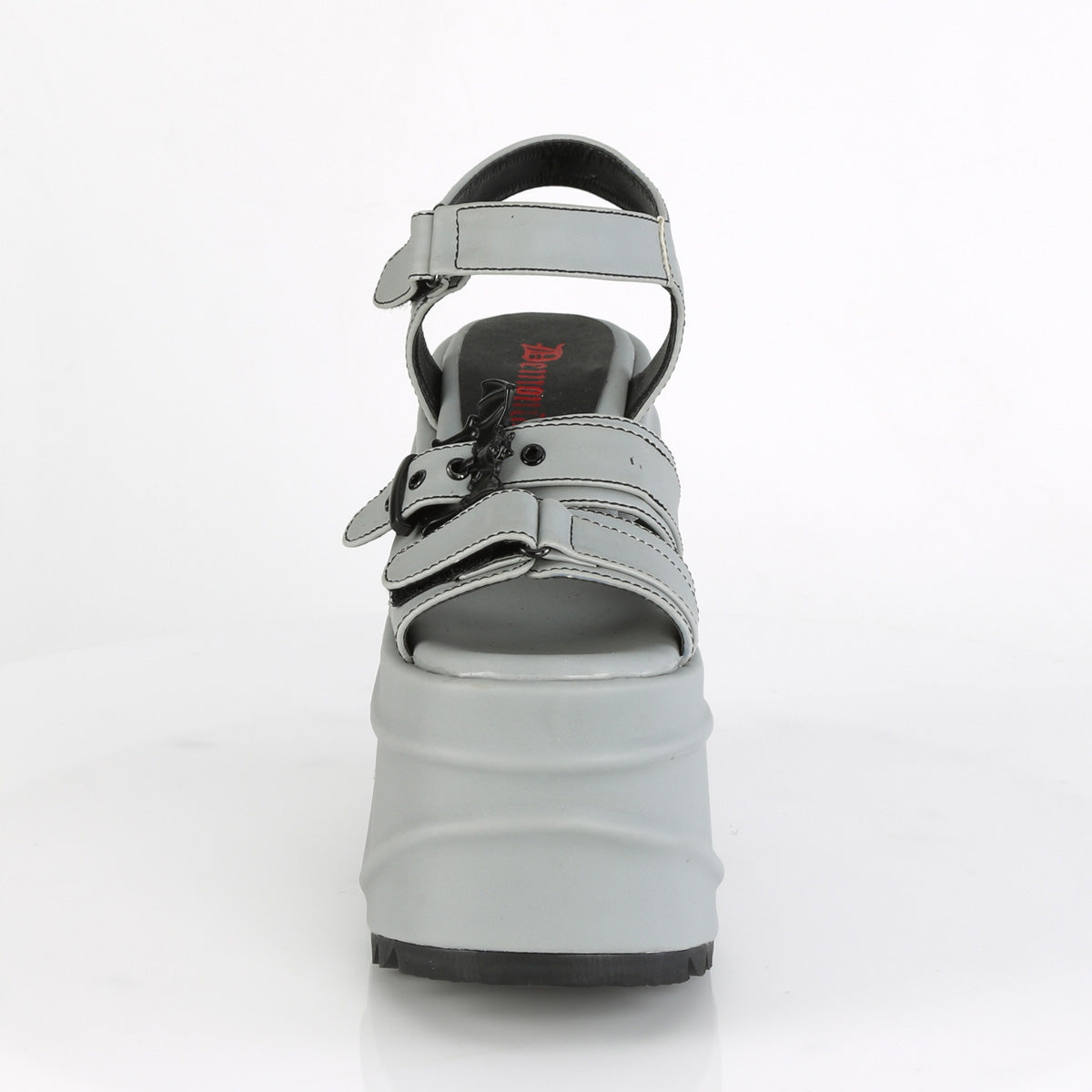 | Name | DemoniaCult Frauen Sandalen WAVE-13 graues reflektierendes veganes Leder |