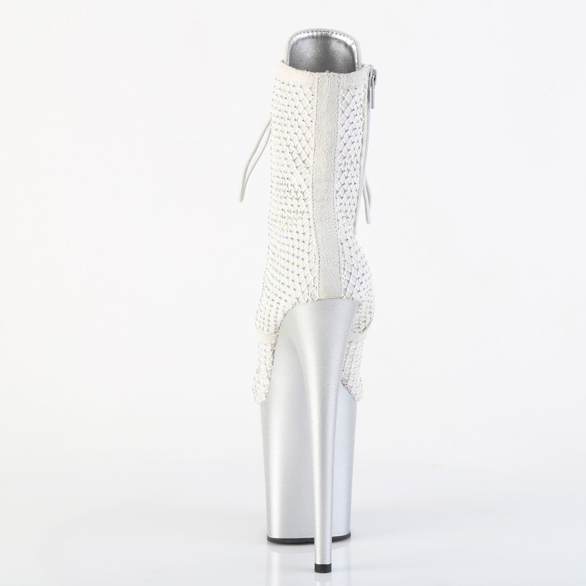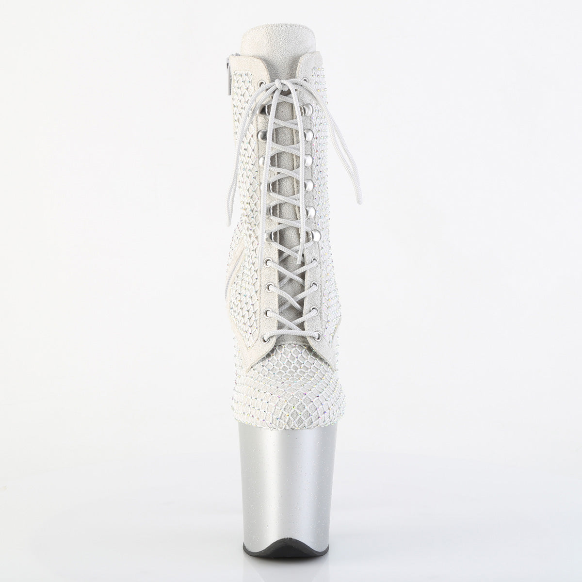 Pleaser Women's Platform Shoes FLAMINGO-1020RM Silver Faux Sude-RS Mesh/Slv Matte