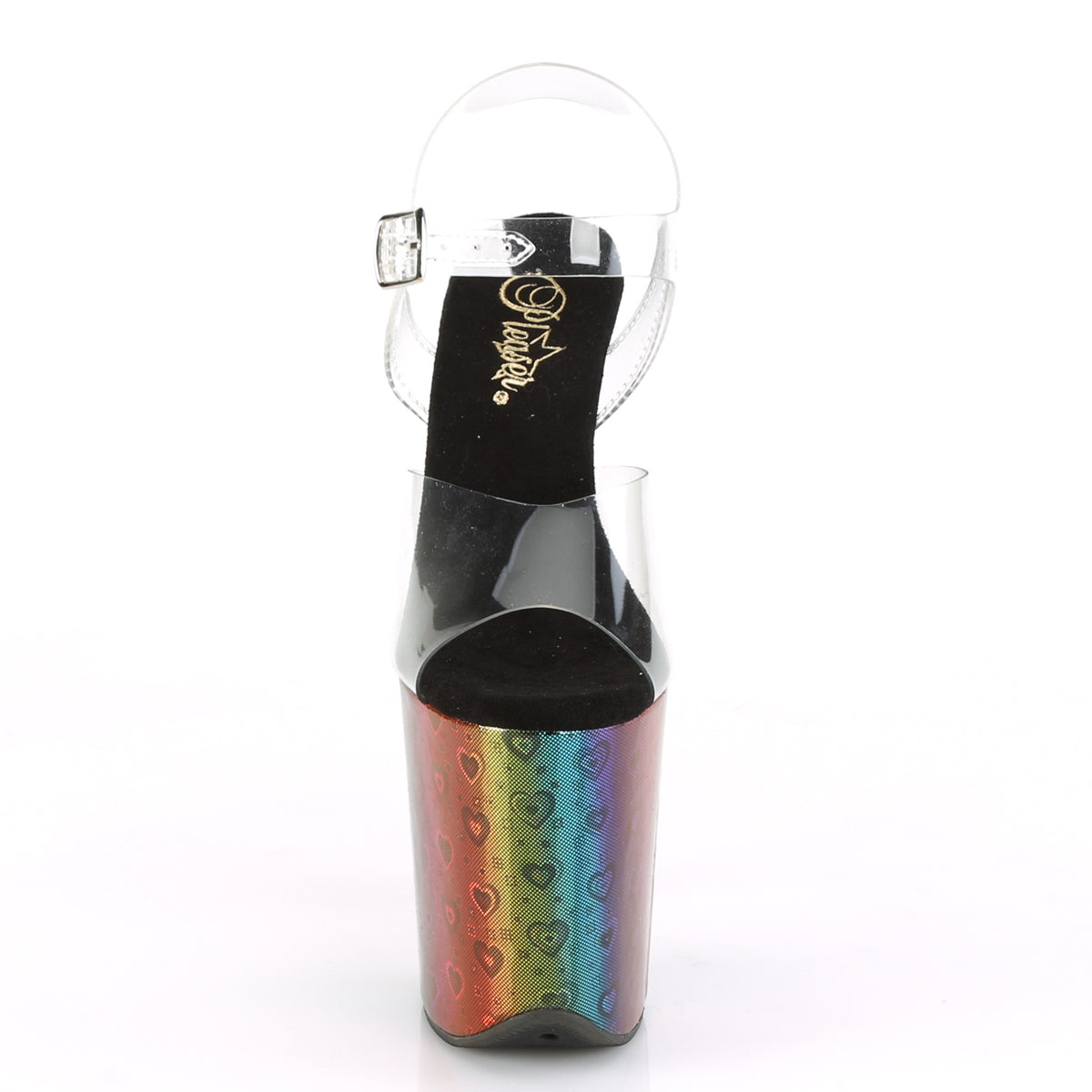 8 "" (200 mm) Ferse, 4 "" (100 mm) Plattform -Knöchelgurtsandale mit Plattformboden mit einem verpackten Bottom mit Rainbow Hologramm mit Herzen